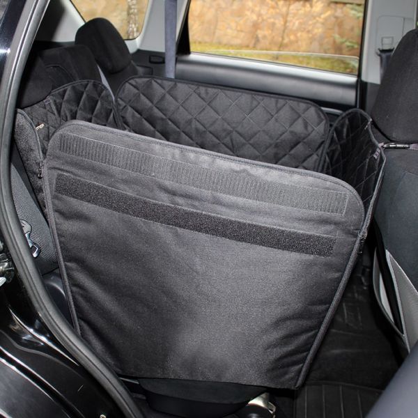 Автогамак для собак с защитой двери и порога автомобиля на половину заднего сидения.