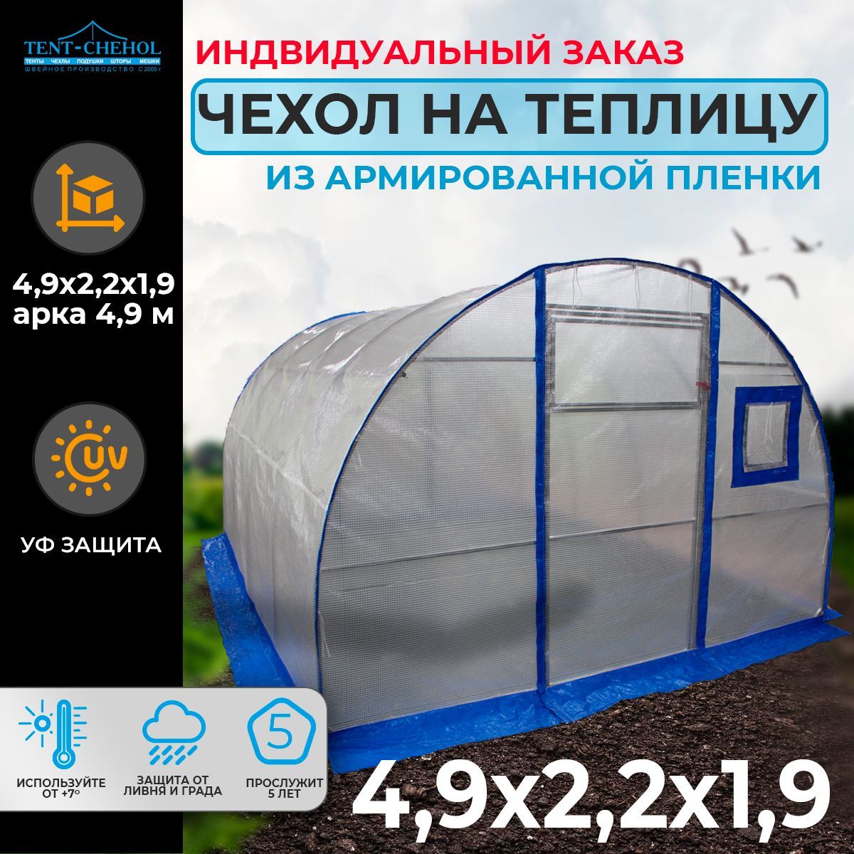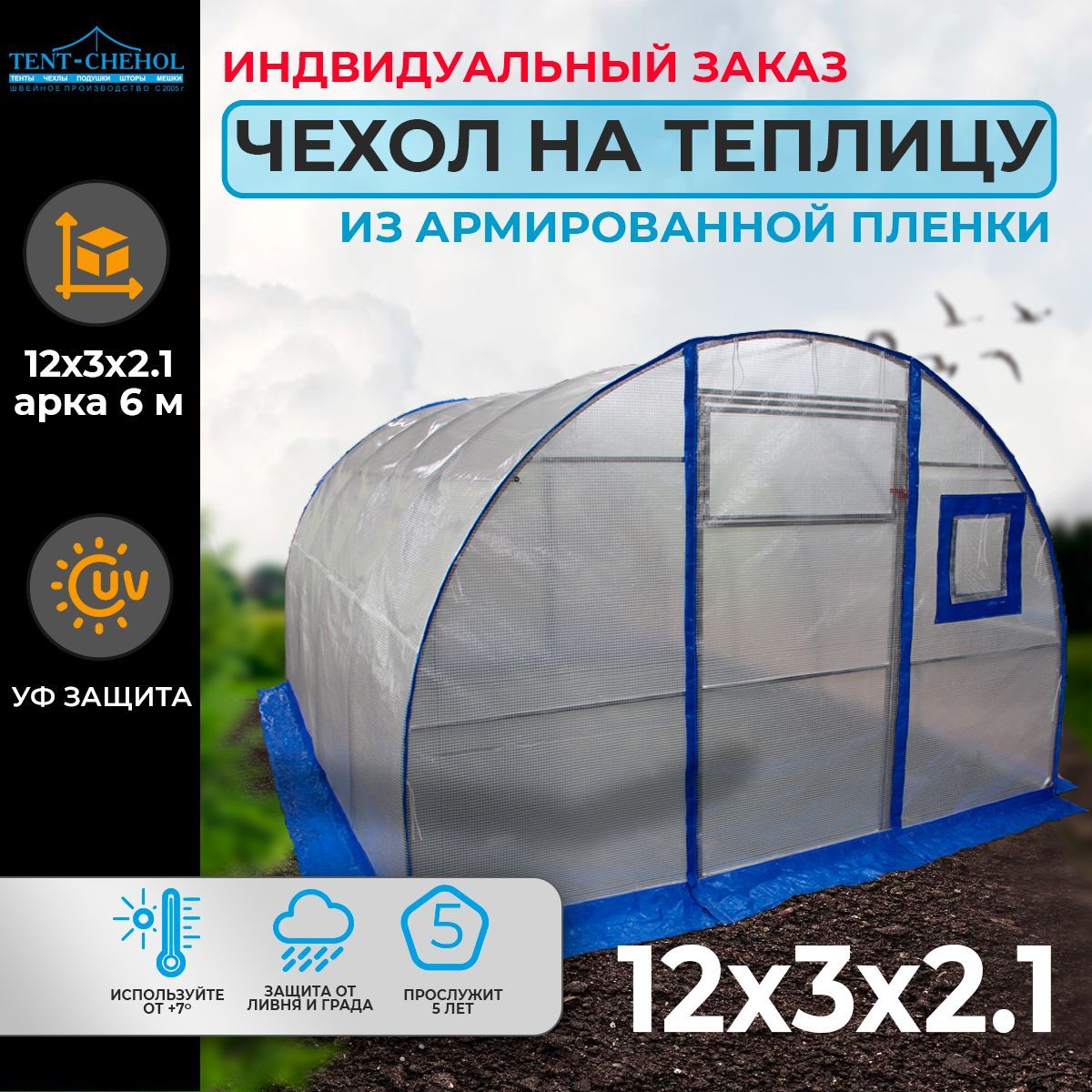 Так как мы являемся производителями, у Вас есть возможность заказать пошив съемных чехлов на теплицу по индивидуальным размерам с окнами и усиленными швами из ПВХ ткани как для китайских теплиц так и для отечественных. Работаем как с физическими лицами так и организациями оптом и в розницу.