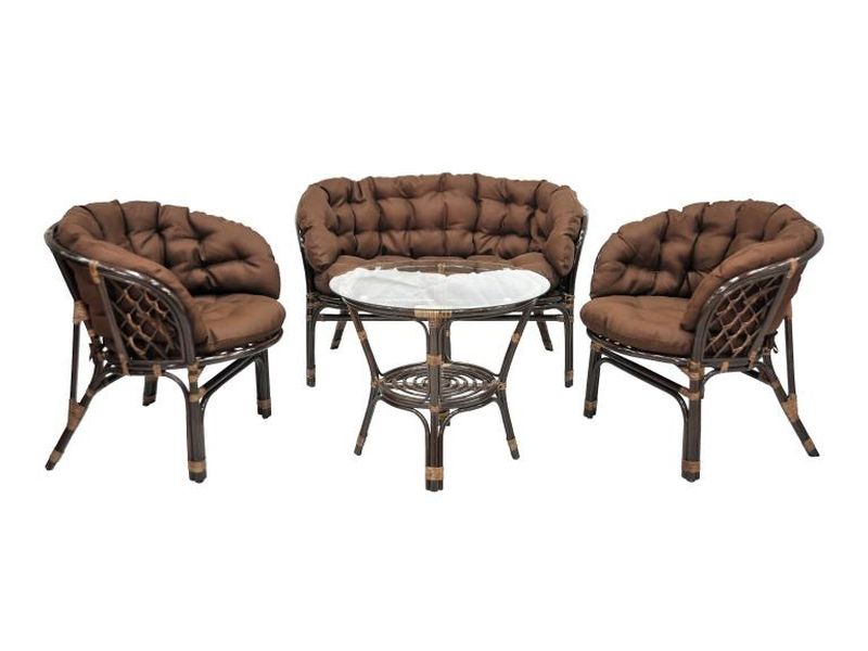 Предлагаем вам приобрести подушки, предназначенные для комплекта мебели Багама. В комплекте находятся подушки, предназначенные для двух кресел и дивана. Спинка и сидения являются отдельными элементами. Для изготовления мы используем мебельные ткани, которые могут иметь разную фактуру и цвета. Благодаря завязкам подушки прочно прикрепляются к мебели. В качестве наполнителя используется поролоновая крошка, простегана подушка пуговицами. Такая подушка подойдёт для стандартных комплектов, изготовленных из натурального ротанга Багамы. Для того, чтобы приобрести данную продукцию, вам просто нужно добавить в корзину необходимое количество позиций.