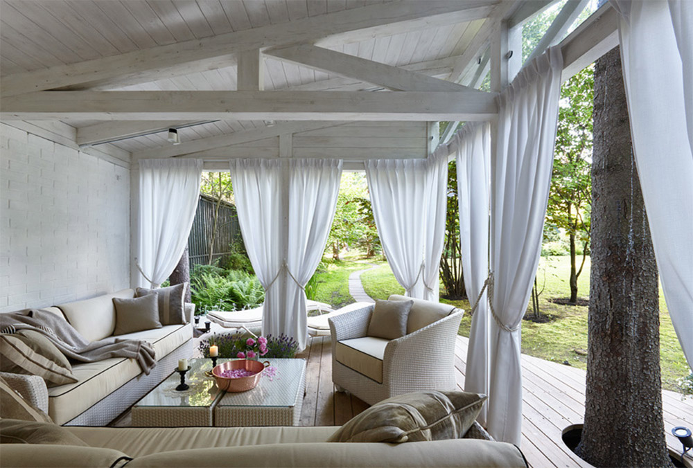 Подушки для мебели на открытых верандах могут адаптироваться к сезонам. Их можно легко менять в зависимости от времени года и погодных условий. Влагостойкие и устойчивые к ультрафиолету ткани подходят для летних месяцев, в то время как более плотные и теплые материалы идеально подходят для холодного времени.