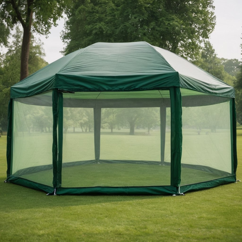 Трехметровая москитная сетка зеленого цвета для беседки обеспечит комфортное времяпрепровождение на улице.
