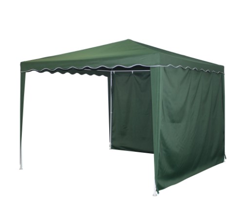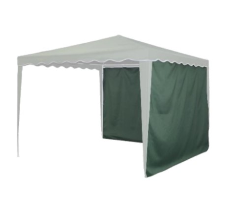 Это шторы, предназначенные для тента, они отлично будут дополнять крышу из такого же материала. В комплекте находятся две шторы, у них тёмно-зелёный цвет. Благодаря таким шторам можно закрыть зону вашего отдыха от солнечных лучей, а также посторонних взглядов, особенно актуально это будет в том случае, если у вас небольшой участок, который с лёгкостью можно увидеть от соседей или с дороги. В комплекте находится два полотна, имеющих размер 3 на 3 м. Изготовлены такие шторы из полиэстера, они очень устойчивы к износу, за ними легко ухаживать.