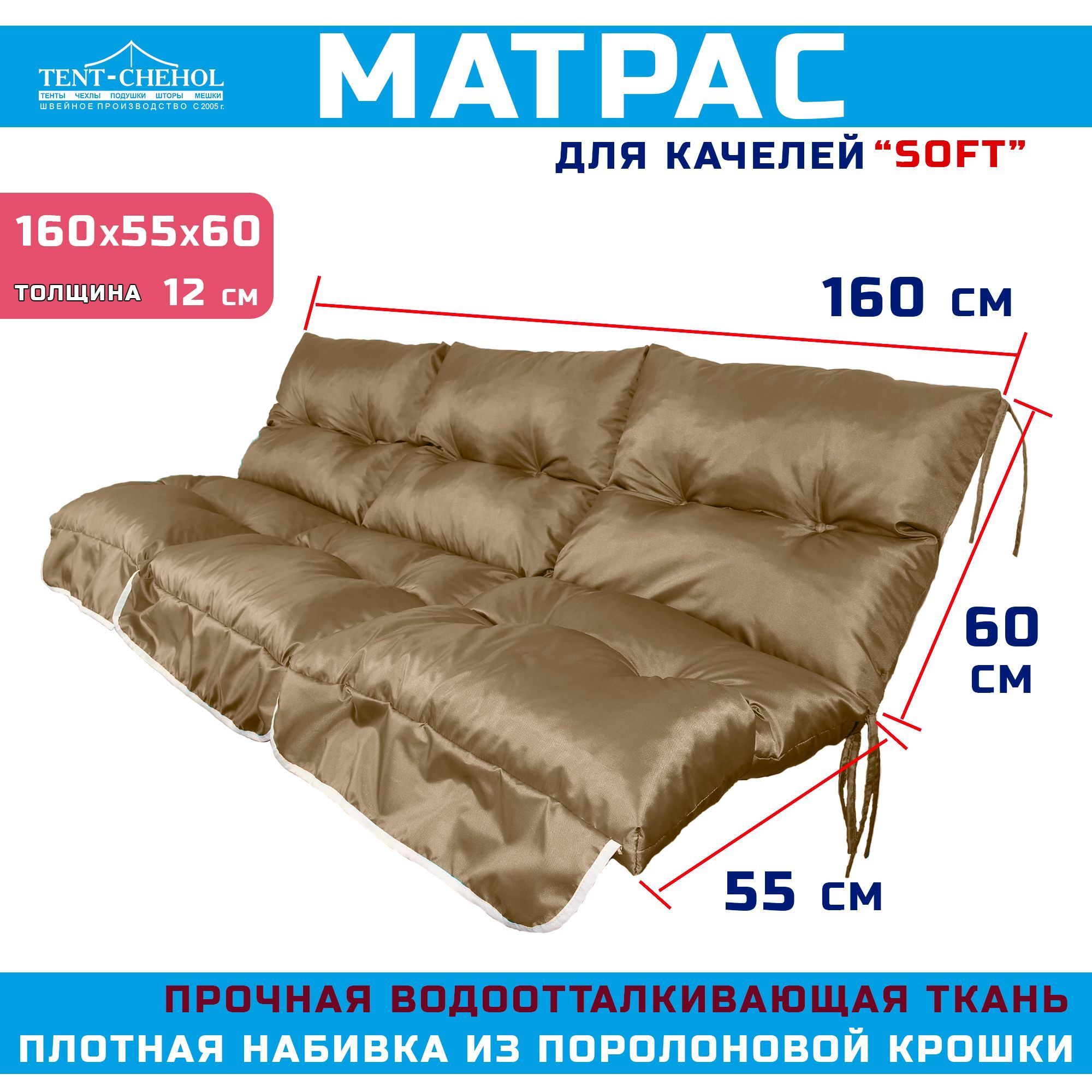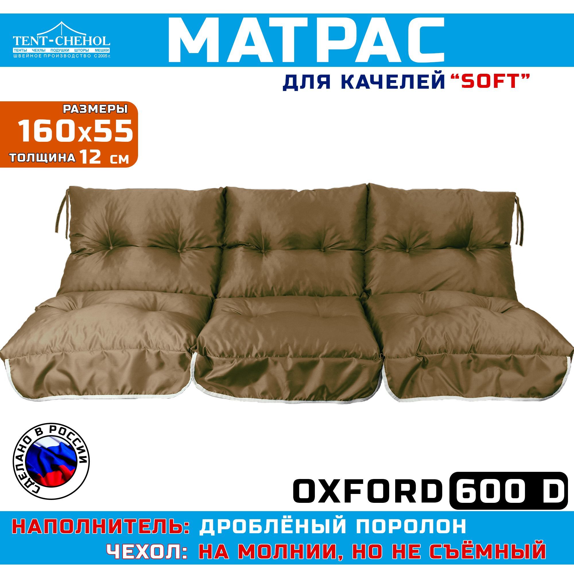 Краткое описание «Матрас для качелей 160х55х60 (коричневый Оксфорд 600, с поролоновой крошкой)»