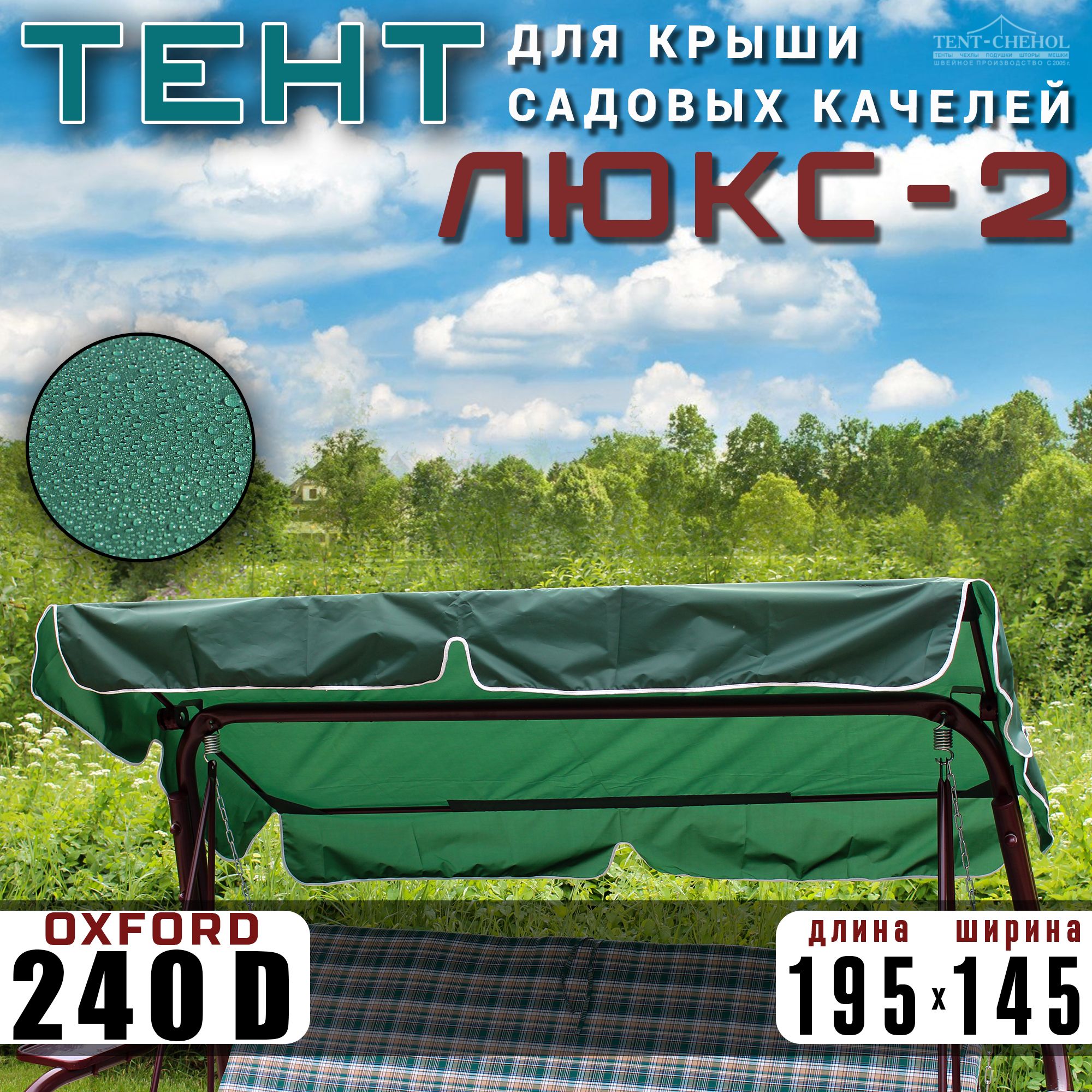 Краткое описание «Тент для садовых качелей Люкс-2, еловый, 195х145 см»