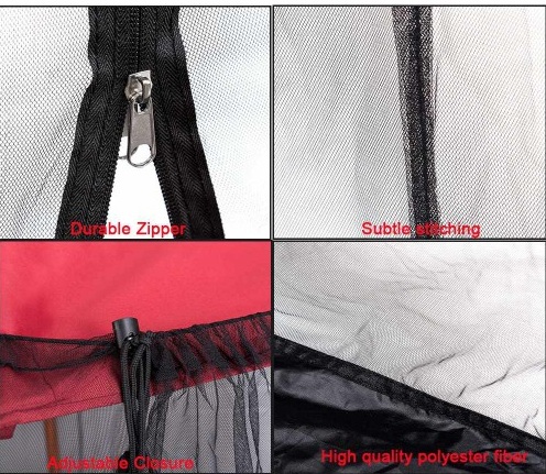 Прочная сетка подстраивается под Зонты: Сетчатое покрытие-высококачественный 100% полиэстер с толщиной моно-нити 75D. Очень тонкая, дышащая сетка не пропускает насекомых, но позволяет легко просматривать и просматривать. Шнурок в верхней части сетки регулирует размер, чтобы соответствовать зонтикам.